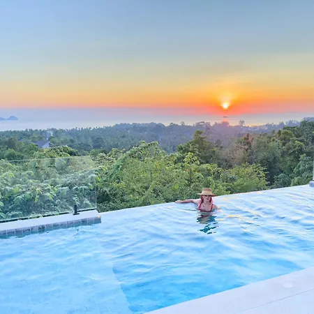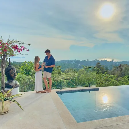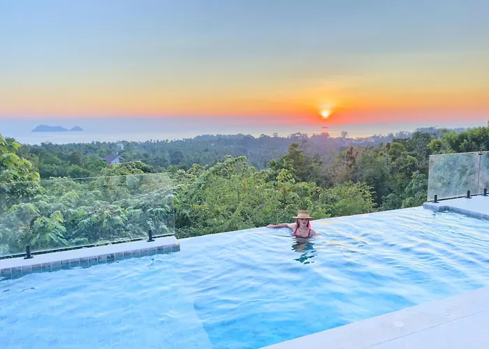 Guests can enjoy a seaside sea view from a terrace at Anora Villa Sunset View 3Br Ko Pha Ngan, 10 minutes by car from Purina Sheep Farm.